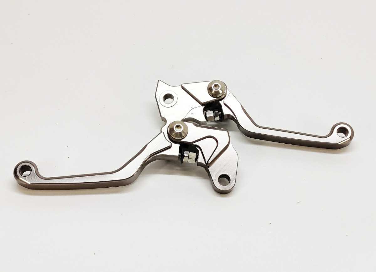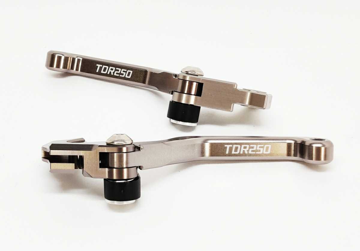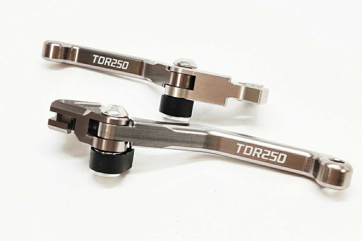 TDR250 チタンカラー ショートタイプブレーキ、クラッチレバーセット アルミ削り出し チタンカラー