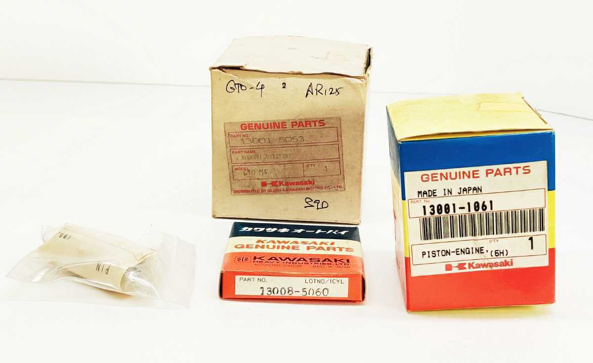 タイのKAWASAKI正規店のバックヤードで見つけました。AR125スタンダードサイズピストンキットです。このセットはタイでは13001-5053で売られていたようです。