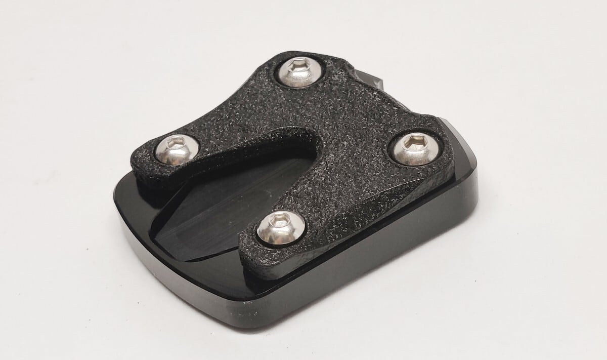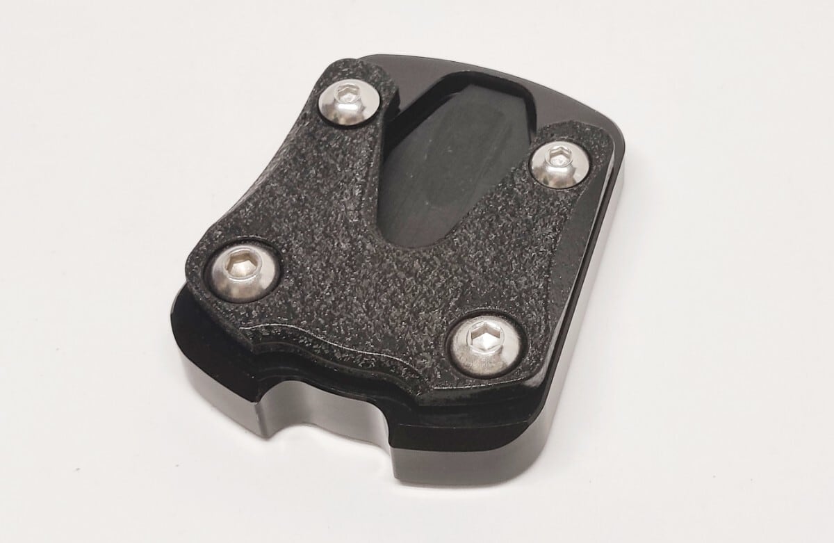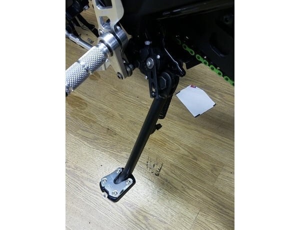 純正スタンドの地面と触れる部分の面積を大きくすることによって、ぬかるんだ地面でも安定して駐車することができます。